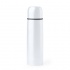 A double-wall stainless steel thermos bottle with a glossy finish.