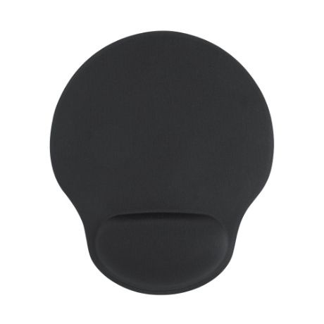 Soft polyester mousepad with a padded wrist rest and an anti-slip silicone base for comfortable, stable use.