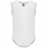 Sleeveless single-jersey bodysuit with a crew neck and 1x1 round ribbed armholes and edges. Fastened at the crotch with snap buttons and featuring a crossed shoulder opening for easy dressing.