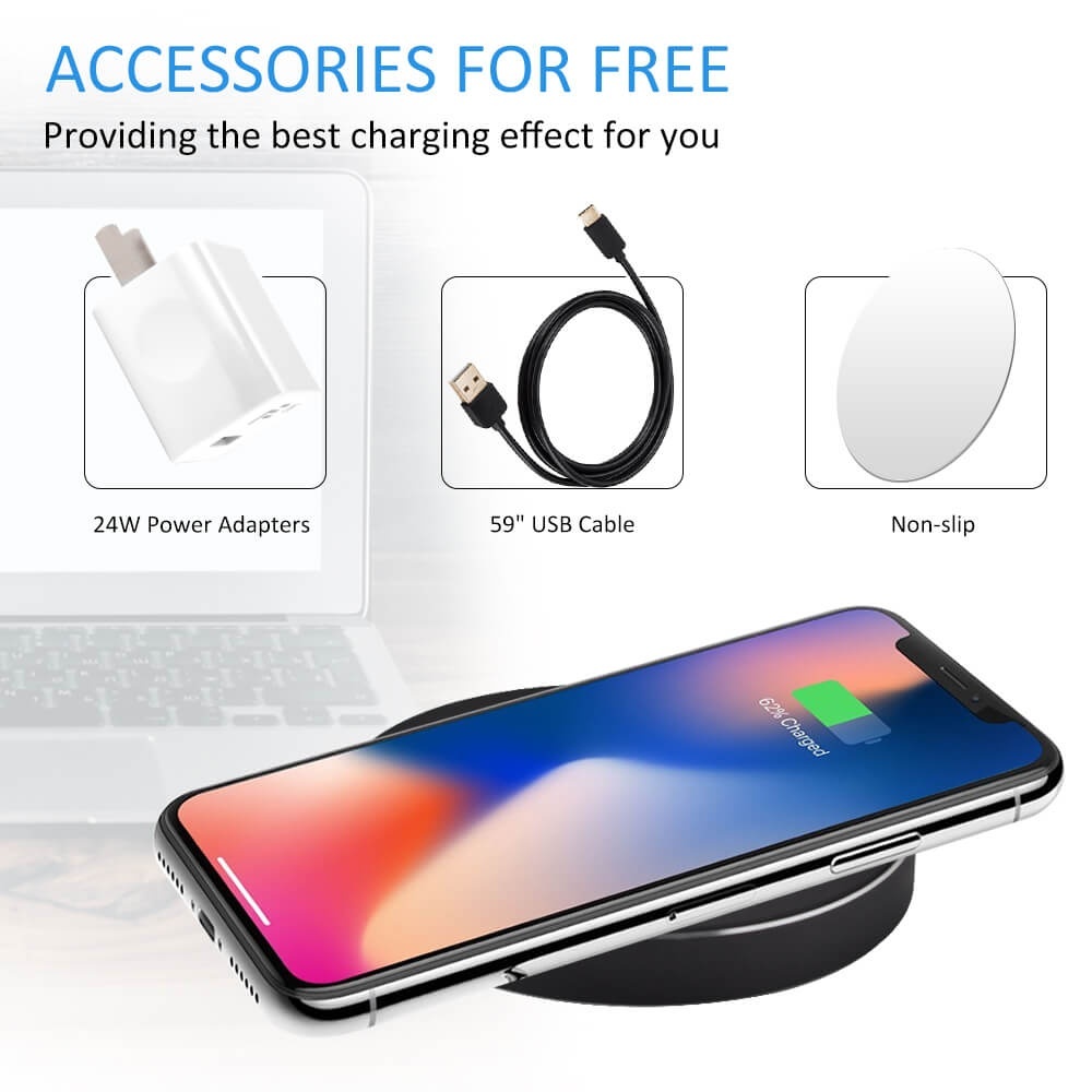 Fast 10 W Qi charger. Place your device on this pad and start fast charging without any cables.