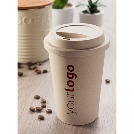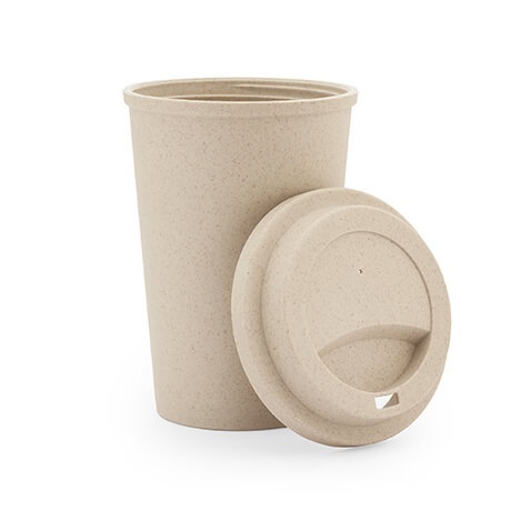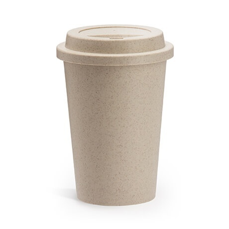 Cup featuring a screw lip, made from bamboo fiber and PP. Capacity 380ml.