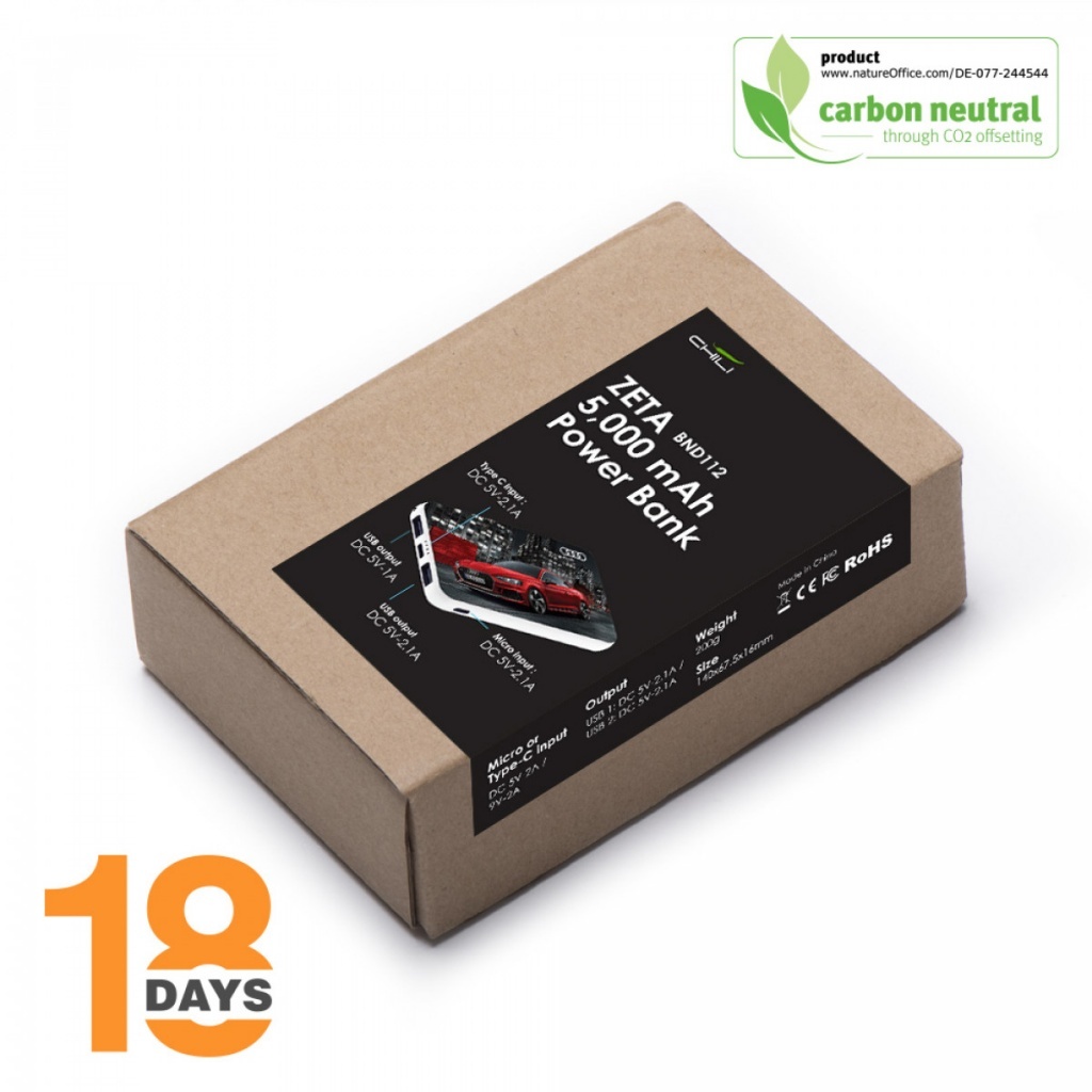 The Powerbank ZETA is a remarkable device, crafted with precision to meet all portable power needs. The combination of ABS/PC materials creates a durable and stylish casing, while the advanced Li-Poly battery provides sufficient power with a capacity of 5000 mAh. The BND112 Zeta charger is equipped with a Micro/Type-C input and two USB outputs, each delivering DC5V-2.1A, ensuring efficient and fast charging for multiple devices simultaneously. Whether you’re on a long flight, in a remote location, or simply in need of an extra boost of energy, the BND112 Zeta is the ultimate solution for all your mobile power needs.