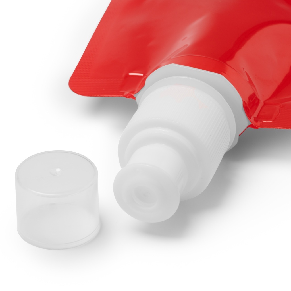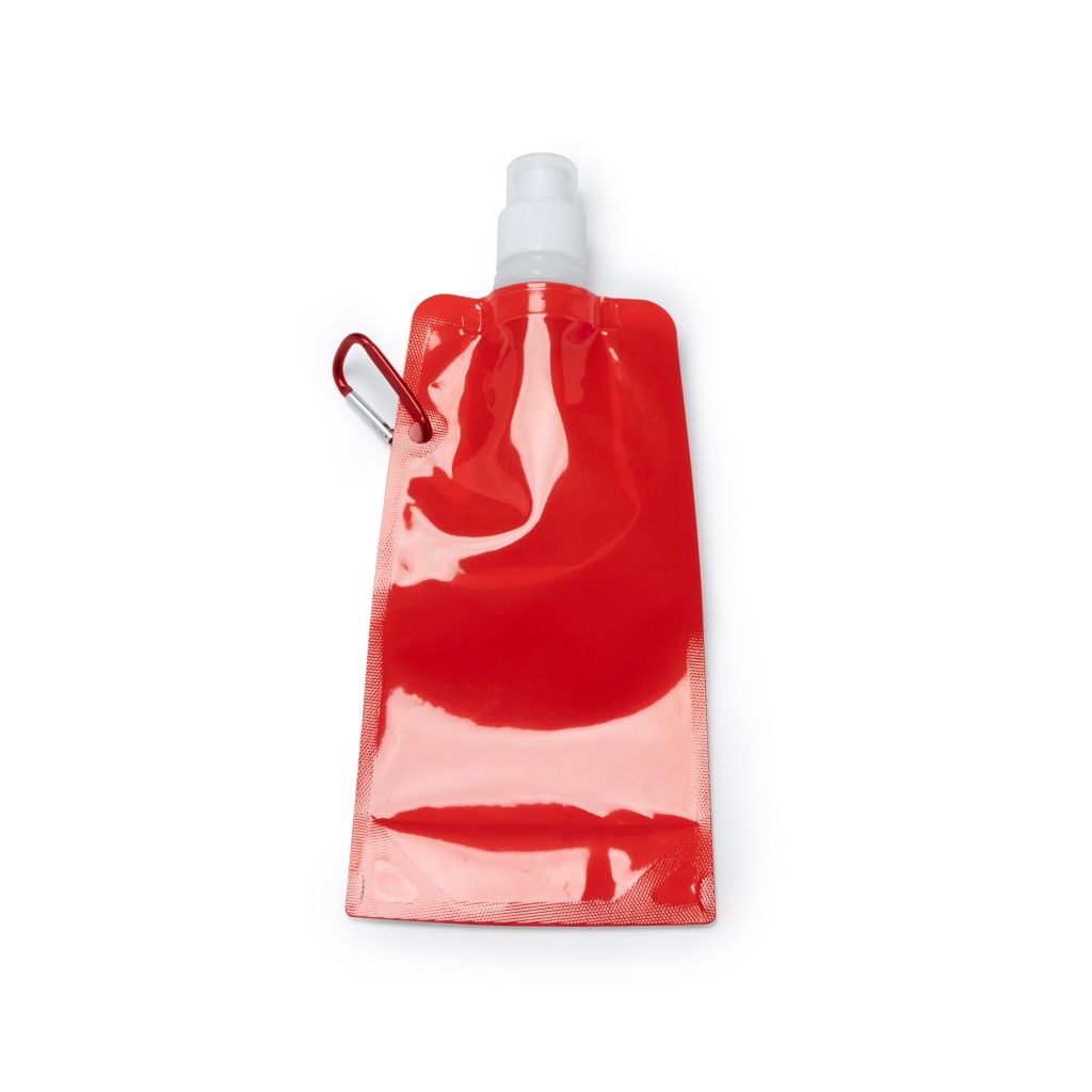 Collapsible bottle with cap. Includes an aluminum carabiner. Easy to carry in hand and takes up little space in your backpack.