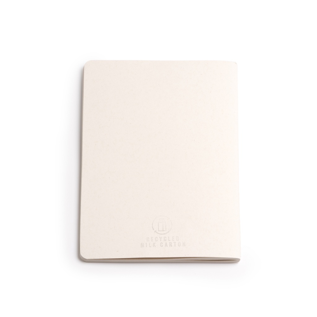 Notatnik w formacie A5 zrobiony z kartonów po mleku pochodzących z recyklingu. Miękka okładka. 60 arkuszy w linie.
