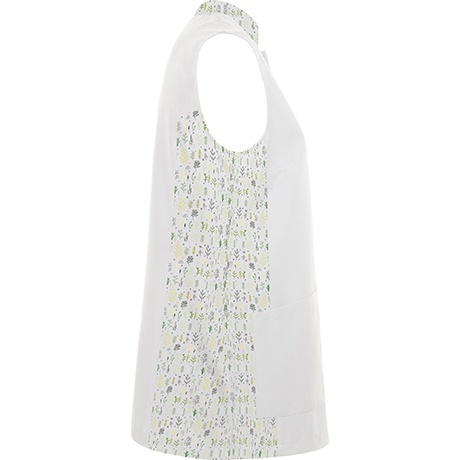 - Kołnierzyk, boczne panele i plisy na piersi.
