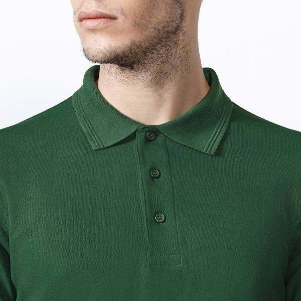 Koszulka polo z długim rękawem. Zapięcie na trzy guziki (dwa guziki w modelu dziecięcym). Prążkowany kołnierzyk i mankiety. Wzmocnione, kryte szwy przy kołnierzyku. Boczne rozcięcia. Elastyczne ściągacze przy mankietach.
