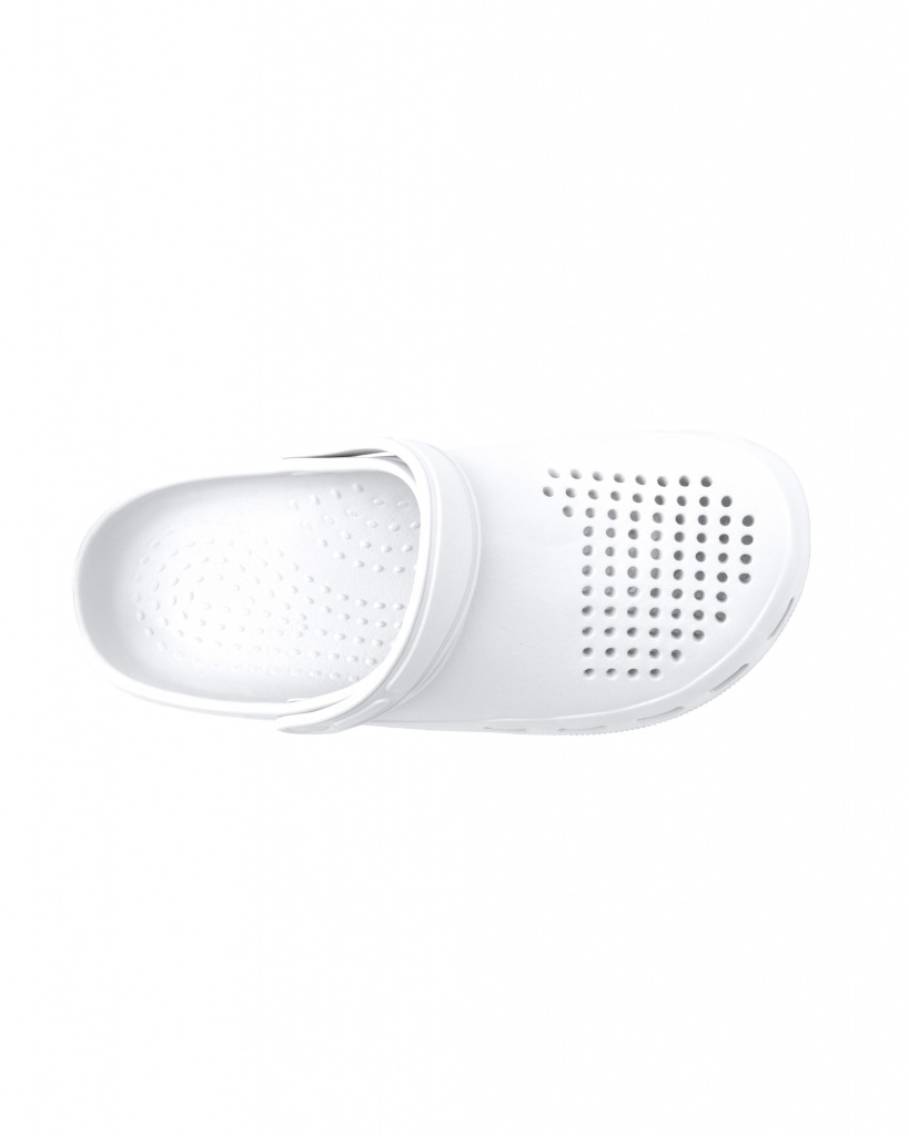 Bardzo wygodne chodaki wyposażone w otwory wentylacyjne. Pasek zaciskowy można ustawić w dwóch pozycjach. Podeszwa zapewnia ochronę antypoślizgową.