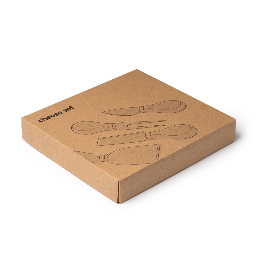 Zestaw do serów zawierający 4 przybory ze stali nierdzewnej z drewnianą rękojeścią. Całość zapakowana w eleganckie etui z wewnętrzną wyściółką.