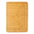 Prostokątna deska do krojenia wykonana z naturalnego bambusa, wyposażona w obręcz do odprowadzania soków.