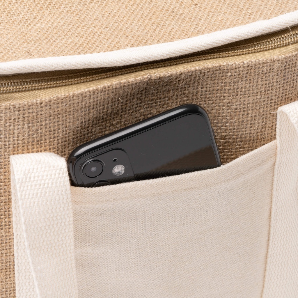 Florit - Jutowa torba termiczna z przednią kieszenią wykonaną z bawełny. • Florit - Jutowa torba termiczna z przednią kieszenią wykonaną z bawełny.