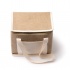 Jutowa torba termiczna z przednią kieszenią wykonaną z bawełny, z główną komorą wyłożoną podszewką izotermiczną o aluminiowym wykończeniu. W komplecie bawełniane uchwyty ułatwiające przenoszenie.