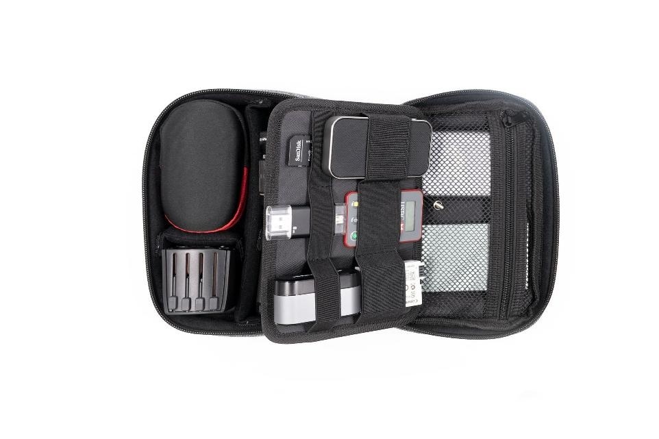 Wielozadaniowy organizer doskonale zabezpiecza i porządkuje codzienne przedmioty wartościowe, małą elektronikę, przewody zasilające, adaptery, ładowarki, słuchawki, karty pamięci itp.
