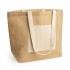 Torba wykonana z laminowanej juty, wyposażona w przednią kieszeń oraz długie uchwyty z naturalnej bawełny.