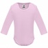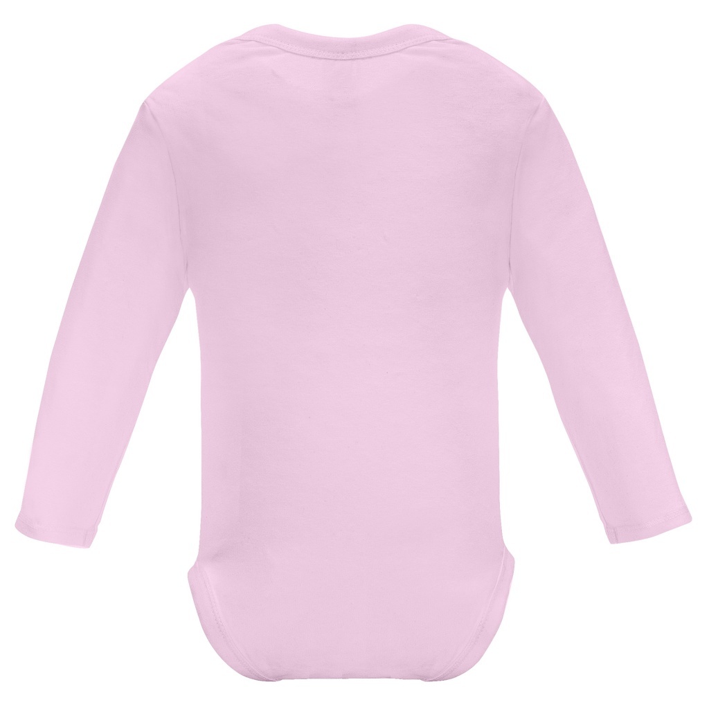 Body z długim rękawem dla niemowląt, wykonane z tkaniny single jersey. Okrągły dekolt wykończony lamówką 1x1. Zapięcie w kroku na zatrzaski.