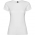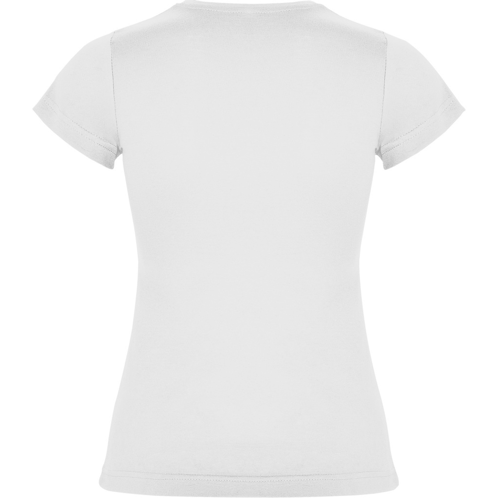 Dopasowana koszulka damska. Zaokrąglony, dwuwarstwowy ściągacz przy szyi, typowo damski fason. Wzmocnione, kryte szwy przy kołnierzyku i na ramionach, szwy boczne.