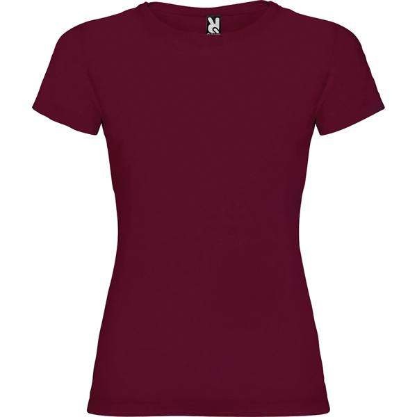 Dopasowana koszulka damska. Zaokrąglony, dwuwarstwowy ściągacz przy szyi, typowo damski fason. Wzmocnione, kryte szwy przy kołnierzyku i na ramionach, szwy boczne.