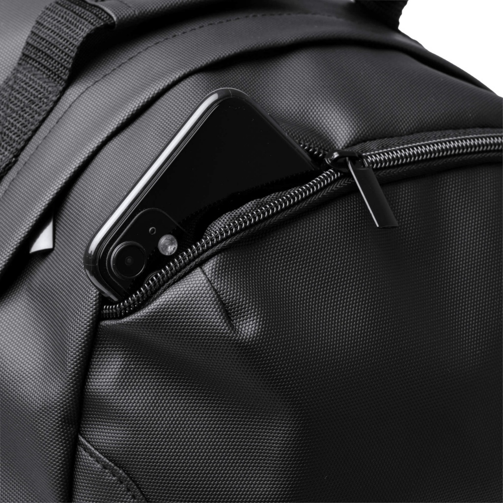 Plecak z wytrzymałej skóry PU z odblaskowymi detalami. Posiada przestronną główną komorę z wewnętrzną kieszenią na laptopa do 17 cali, przednią część z elastycznymi ściągaczami oraz boczną kieszeń. Regulowane uchwyty, wyściełane plecy i rączki. Pojemność: 20l