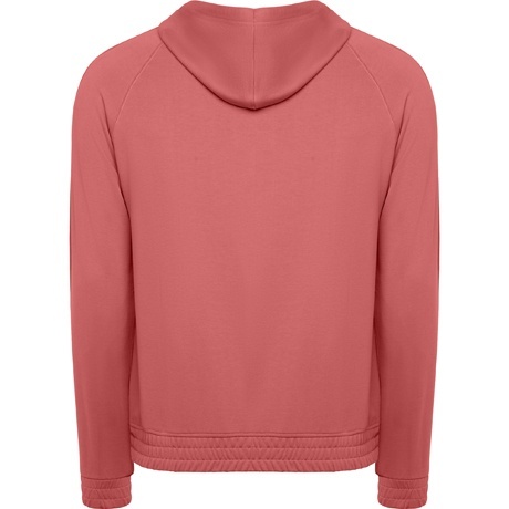 Uniwersalna bluza z kapturem w kroju unisex. Model typu kangurka z praktyczną kieszenią na brzuchu. Gładkie sznurki wyposażone w haftowane oczka. Brzegi bluzy przy pasie i rękawach wykonane z tego samego materiału. Na rękawach widoczny wypukły szew.