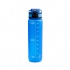 Butelka z tworzywa Tritan posiada półprzezroczysty korpus i dopasowaną zakrętkę z praktycznym uchwytem do przenoszenia. Na ściance znajdują się wskazówki dotyczące nawodnienia oraz oznaczenie pojemności, co ułatwia kontrolę przyjmowanej ilości płynów. Produkt łączy użyteczność z estetyką.