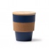 Kubek wykonany z polipropylenu z recyklingu; opaska z korka i pokrywka z bambusa.