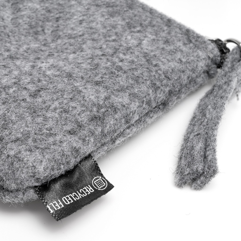 Wnętrze oferuje kompaktową, ale praktyczną przestrzeń na monety, klucze, słuchawki i inne drobne akcesoria, które warto mieć przy sobie. Trwały filc z recyklingu chroni zawartość przed uszkodzeniami, zachowując estetykę produktu.
