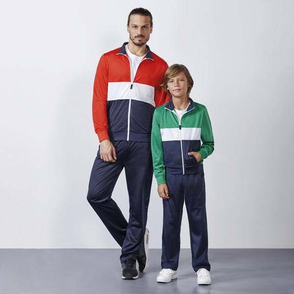 5. Spodnie z elastycznym pasem regulowanym ściągaczem, dwie boczne kieszenie wykończone lamówką.