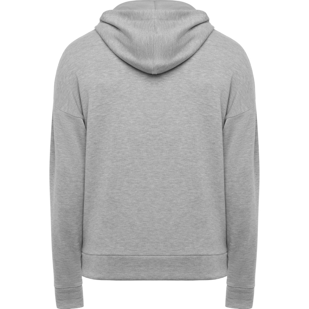 Bluza uniseks z kapturem, wykonana z cienkiego materiału. Model z bocznymi kieszeniami; dół bluzy z tyłu oraz mankiety przy nadgarstkach uszyte z materiału głównego.