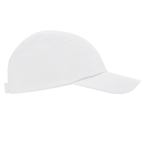 Techniczna czapka z daszkiem, 3 panele. Lekka i oddychająca tkanina. Tylne regulowane zapięcie na rzep. Przednia część czapki przeznaczona do nadruku.
