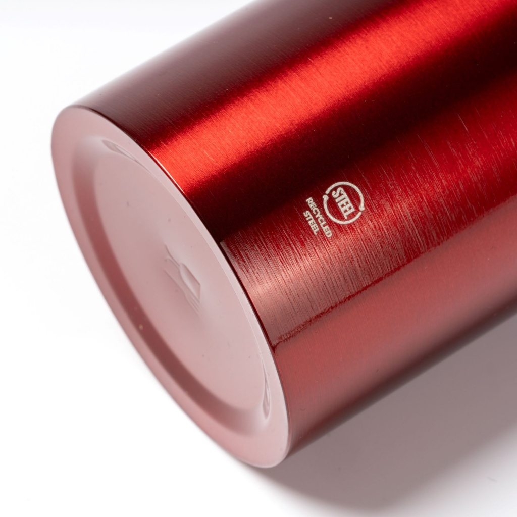 Butelka wykonana z recyklingowanej stali nierdzewnej 304 o trwałej, błyszczącej powierzchni. Wyposażona w praktyczny karabińczyk — idealna do codziennego użytku i na wyjścia na świeże powietrze. Pojemność: 500 ml.