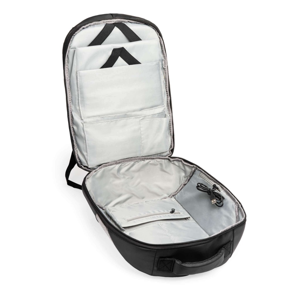 - Główna kieszeń z dwiema wyściełanymi przegrodami, idealna na laptopa i tablet.