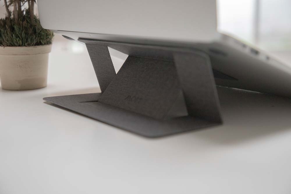 Łączy się z laptopem w sposób niemal niewidoczny, jest prosta w montażu i demontażu. Umożliwia szybkie otwieranie i zamykanie, pozostając zamocowana na czas mobilnego użytkowania. Przeznaczona do laptopów o przekątnej od 11,6 do 15,6 cala i nośności do 8 kg. Niezalecana do modeli z otworami wentylacyjnymi w miejscu przylegania. Waga 65,7 grama, grubość 3,04 mm; wykonana z PU i włókna szklanego dla zapewnienia wytrzymałości i stabilności. Produkt łatwy do demontażu i ponownego zamocowania. Dwa tryby pracy: wysoki — do pozycji siedzącej, niski — dla odciążenia nadgarstków. Dostępna w kolorach: złotym, szarym, różowym i srebrnym.
