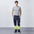 4. Dwukolorowe spodnie wykończone odblaskowymi pasami.