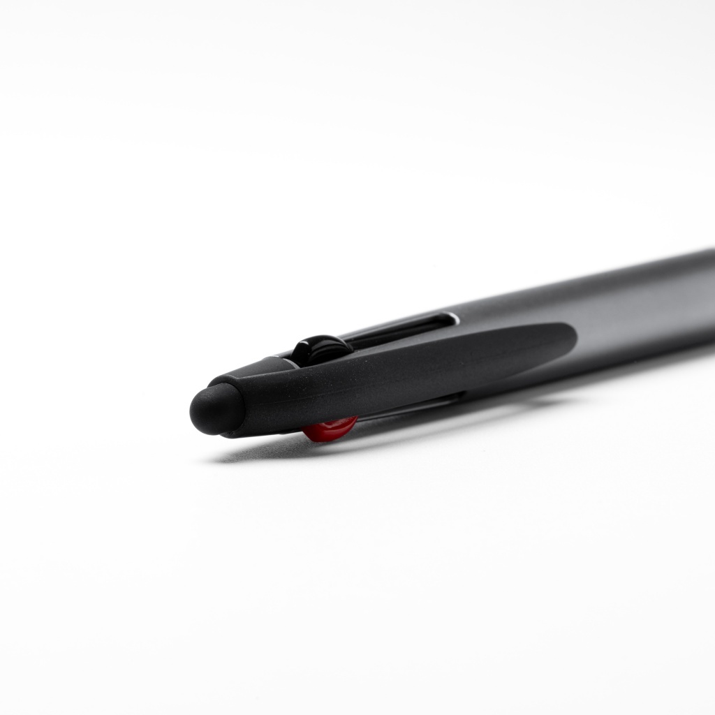Na drugim końcu długopisu znajduje się wskaźnik dotykowy, umożliwiający precyzyjną obsługę ekranów dotykowych urządzeń takich jak smartfony czy tablety, bez pozostawiania odcisków palców. Ten 3-kolorowy długopis łączy funkcjonalność różnych kolorów tuszu, wygodę mechanizmu wysuwanego oraz dodatkową użyteczność w postaci wskaźnika dotykowego, co czyni go idealnym wyborem do pracy, szkoły lub na inne okazje wymagające uniwersalnego i praktycznego narzędzia do pisania.