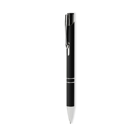 Elegancki długopis o korpusie z miękkiego w dotyku materiału, wyposażony w anodowany przycisk. Końcówka, klips oraz detale wykonane są z chromowanego metalu. Wkład Jumbo zawiera czarny tusz.