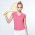 Koszulka sportowa damska z krótkim rękawem w stylu raglanowym.