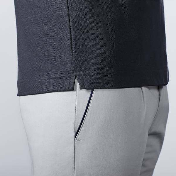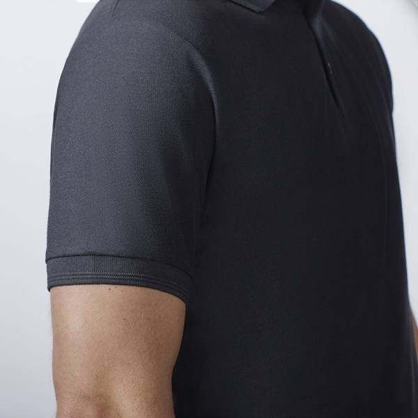 Koszulka polo. Zapięcie z trzema guzikami. Prążkowany kołnierzyk i mankiety. Wzmocnione kryte szwy przy kołnierzyku.