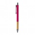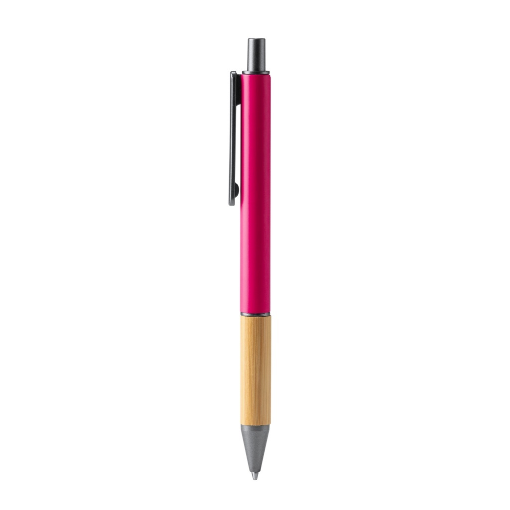 Kulkowy długopis o matowym wykończeniu, z bambusowym uchwytem i ciemnymi detalami. Wyposażony w niebieski tusz.