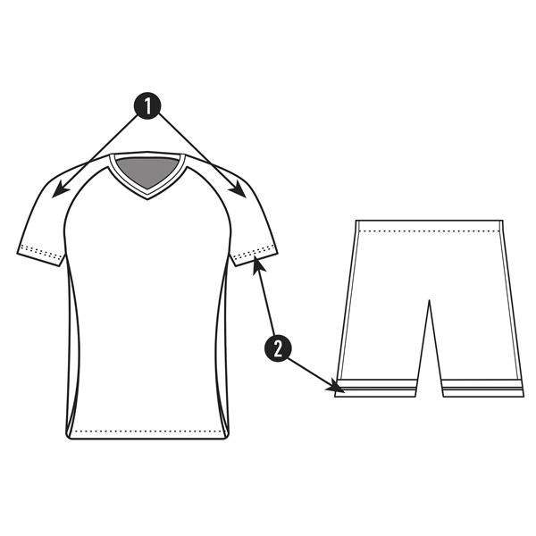 2. Kontrastowe szwy w koszulce i spodenkach.
