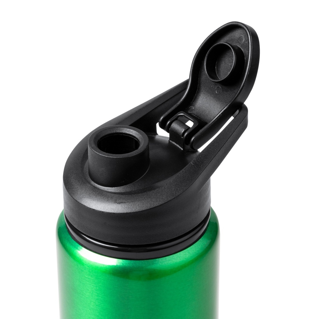 • Raiden - Butelka z recyklingowanego aluminium z metalicznym wykończeniem. Wyposażona w bezpieczną zakrętkę i praktyczny uchwyt do przenoszenia.