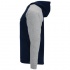 Uniwersalna bluza dwukolorowa unisex, zaprojektowana z komfortem i stylem. Kaptur z krzyżowanym kołnierzem wyposażony w metalowe oczka oraz kontrastowe wnętrze i sznurki. Praktyczna kieszeń typu kangurka oraz elastyczne ściągacze 1x1 przy mankietach i w talii zapewniają dopasowanie i wygodę noszenia.