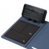 Wielofunkcyjna teczka z tkaniny RPET z magnetycznym zapięciem. Wyposażona w zintegrowany power bank o pojemności 5000 mAh z przyciskiem aktywacji do ładowania smartfona, w tym w technologii bezprzewodowego ładowania. Zawiera notatnik A5 z 64 arkuszami, etui na karty, stojak na smartfon oraz uchwyt na długopis.