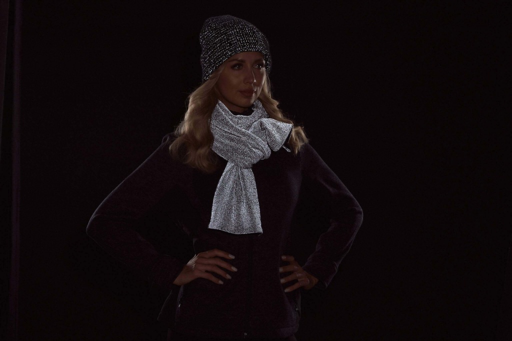 Szalik, który jest widoczny w ciemności. Rozkoszuj się chłodniejszymi dniami w miękkim, odblaskowym szaliku zapewniającym widoczność po zmroku.