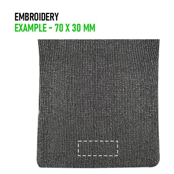 Miękki polar wewnątrz, akrylowa włóczka odblaskowa na zewnątrz.