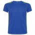 T-shirt techniczny z raglanowymi rękawami. Kontrastowe przeszycia na mankietach, w pasie, przy kołnierzyku oraz po bokach. Karczek wykończony tym samym materiałem. Oddychająca tkanina, łatwa w praniu i suszeniu. Odblaskowe detale.
