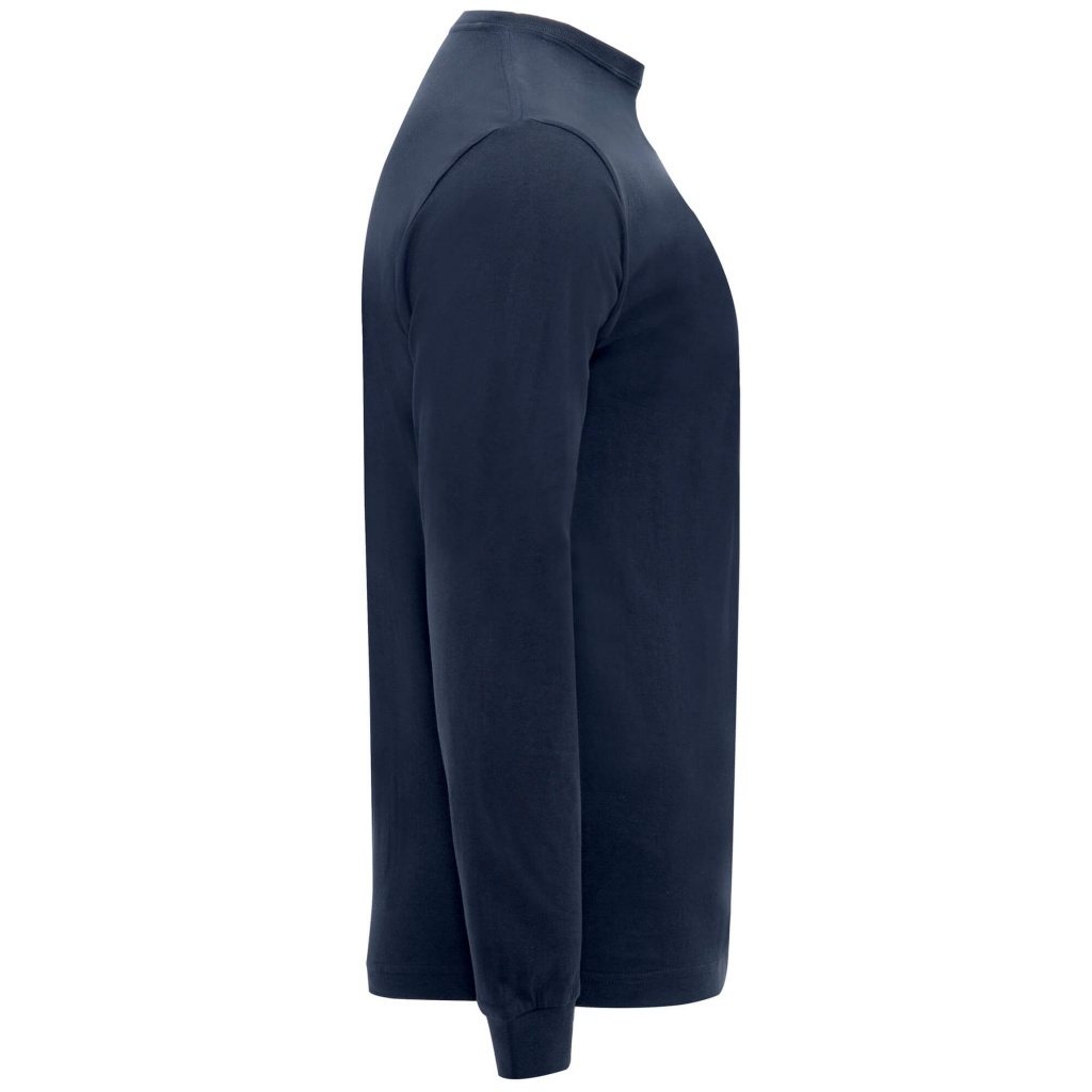 Koszulka z długim rękawem. Czterowarstwowy ściągacz przy szyi wykończony lamówką 1x1. Mankiety przy rękawach. Wzmocnione, kryte szwy na karku i ramionach. Kieszeń na lewej piersi.