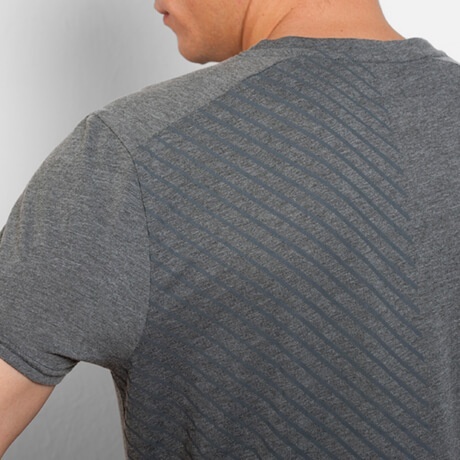 Połowa przedniej i tylnej części koszulki we wzorki w paski. Panele w okolicy ramion.