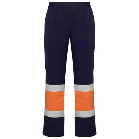 4. Dwukolorowe spodnie wykończone odblaskowymi pasami.