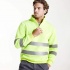 Bluza o wysokiej widoczności zapinana na zamek błyskawiczny, z wysokim kołnierzem wyposażonym w osłonę podbródka oraz ściągaczem.
