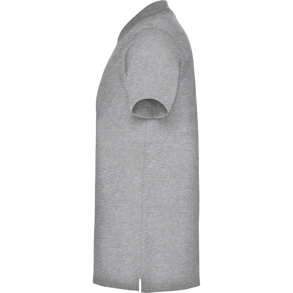 Koszulka polo z krótkim rękawem. Wzmocnione, kryte szwy przy kołnierzyku. Prążkowany kołnierzyk i mankiety. Szwy boczne. Zapięcie na trzy guziczki. Rozcięcia po bokach.