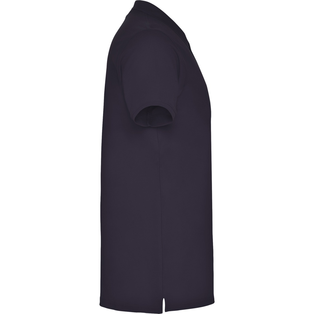 Koszulka polo z krótkim rękawem. Wzmocnione, kryte szwy przy kołnierzyku. Prążkowany kołnierzyk i mankiety. Szwy boczne. Zapięcie na trzy guziczki. Rozcięcia po bokach.